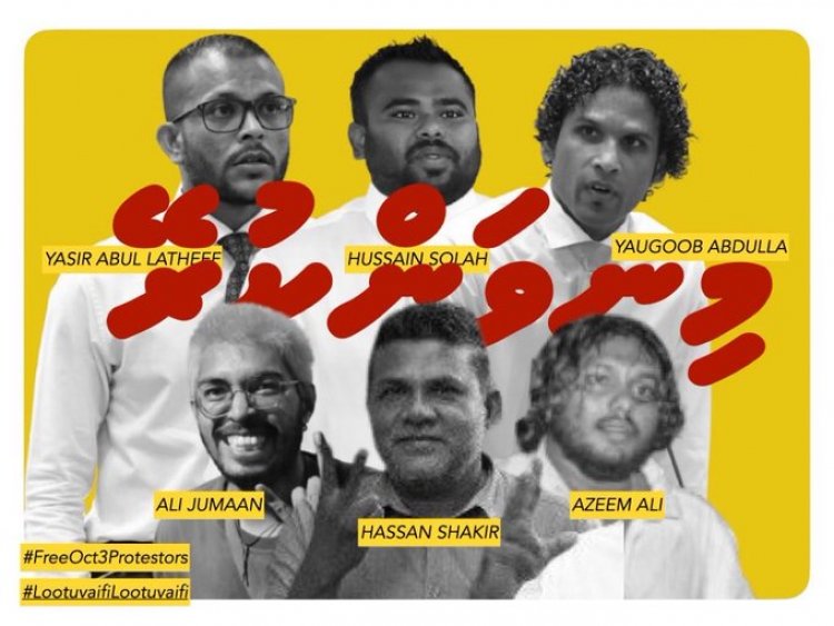 އޮކްޓޯބަރ 3 ގައި އެމްޑީޕީން ބޭއްވި މުޒާހަރާގައި ހަރަކާތްތެރި ވަމުން ދަނިކޮށް އިންސާފުން ބޭރުން ހައްޔަރުކޮށް ބަންދުގައި ބައިތިއްބާފައި ތިބި އެމްޑީޕީގެ 6 މެންބަރުން މިނިވަންކުރުމަށް ސިލްސިލާ ހަރަކާތްތަކެއް އެމްޑީޕީން ވަނީ ފަށާފައެވެ. ގާނޫނު އަސާސީއާއި ހިލާފަށް ސަރުކާރުން ހައްޔަރު ކޮށްގެންގެން އުޅޭ 6 މީހުންގެ ތެރޭގައި ރައްޔިތުންގެ މަޖިލީހުގެ ކުރީގެ ދެ މެންބަރުންނާއި މާފުށީ ކައުންސިލްގެ ރައީސް ހިމެނި ވަޑައިގަންނަވައެވެ.