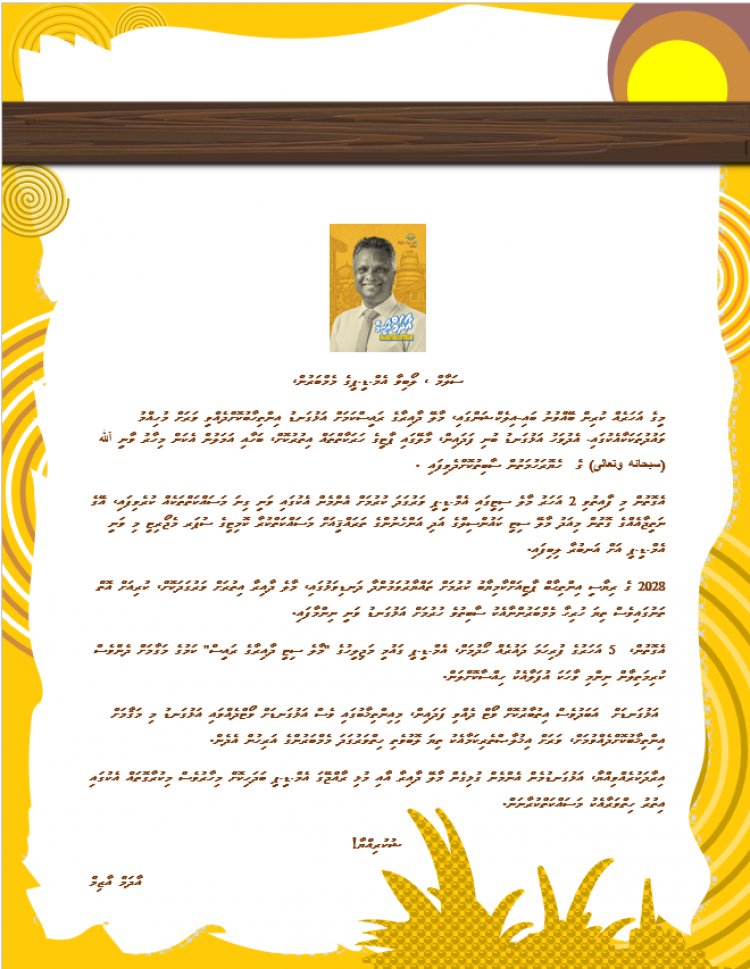 2028 ގެ ރިޔާސީ އިންތިޙާބް ޕާޓީއަށްކާމިޔާބު ކުރުމަށް ތައްޔާރުވަމުންދާ ދަނޑިވަޅުގައި، މާލެ ދާއިރާ އިތުރަށް ވަރުގަދަކޮށް، ކުރިއަށް އޮތް ތަނުގައިވެސް ތިޔަ ހުރިހާ މެމްބަރުންނާއެކު ސާބިތުވެ ހުރުމަށް އަޅުގަނޑު ވަނީ ނިންމާފައި.